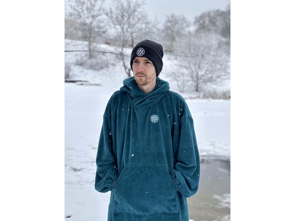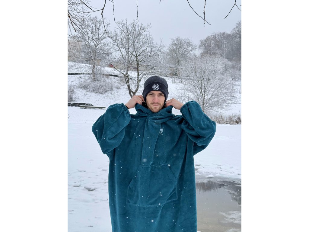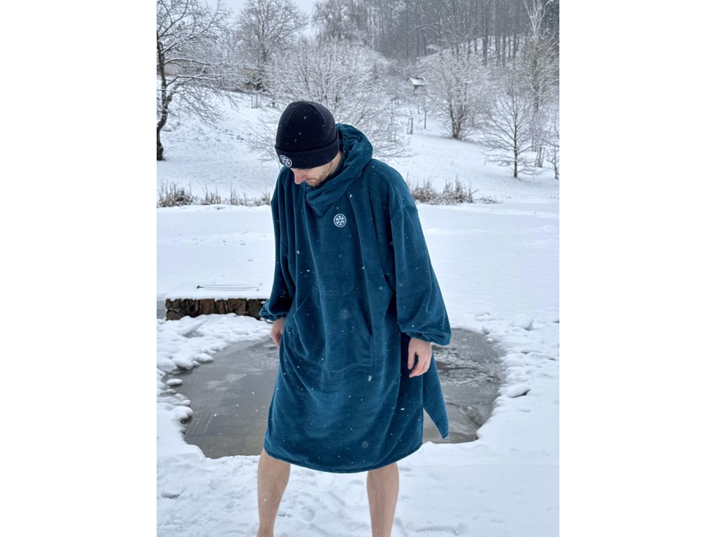 Pončo na otužování jsme vytvořili podle potřeb otužilců: nasaje vodu, zahřeje, a díky oversized střihu se v něm snadno převléknete. Bez ručníkového tance a zvědavých pohledů kolemjdoucích. Na rozdíl od běžných ponč má ochranu krku, dlouhé rukávy a kapuci s gumičkou, takže do něj nefouká, ani nic nechtěně nevykoukne. Praktická kapsa poslouží na plavky i promrzlé prsty, a po použití celé pončo jednoduše zabalíte do objemné kapuce. Je ručně šité v ČR z bambusového froté s certifikací na bezpečný kontakt s pokožkou (OEKO-TEX® STANDARD 100).